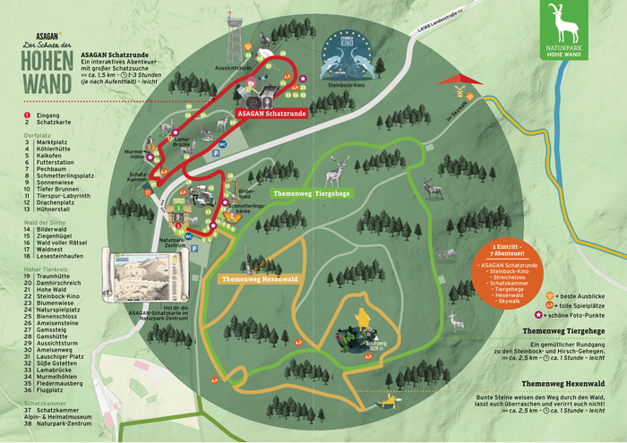 Erlebnisraumkarte Naturpark Hohe Wand Naturpark Zentrum Übersichtskarte Broschüre Naturpark Hohe Wand Naturpark Folder Der Schatz der Hohen Wand - Schatzkarte Der Schatz der Hohen Wand - Forscherheft Folder Europaschutzgebiet Nordöstliche Randalpen Information GB_H Information CZ_SK