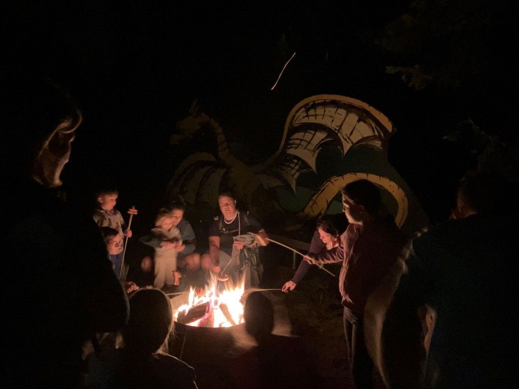 Unsere nächtliche Tour endet am mystischen Drachenplatz, bei wärmendem Lagerfeuer.